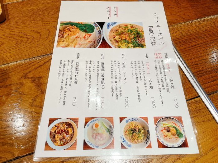 どれも美味しそうで、麻婆麺も気になったけど、花車 汁あり 担々麺(1,000円)を注文。