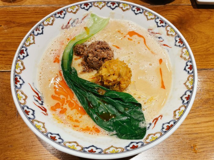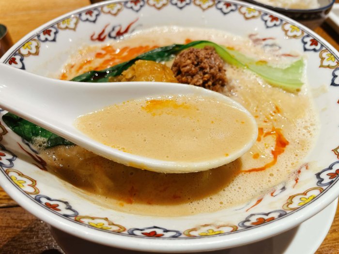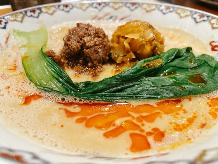 スープは自家製五香ラー油をたっぷりと使っていて、濃厚な芝麻醤の風味が口いっぱいに広がります。