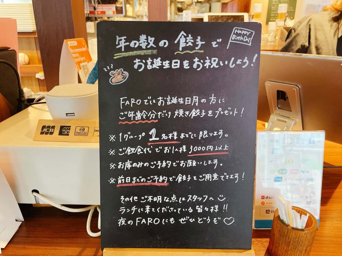 誕生日の人がいれば、年齢の数だけ餃子をサービスしてくれるらしい。