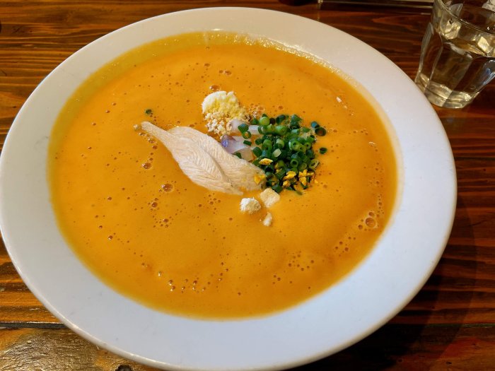 なんでこんな独創的なラーメンが作れるんだろって思ってたら、代表の方がイタリアンの料理人の経歴があるらしく、イタリアンの要素を取り入れているらしい。