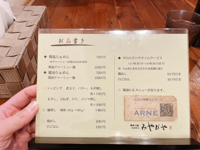 というわけで、今回は『博多鶏塩らぁめん みやびや』というお店を紹介します。