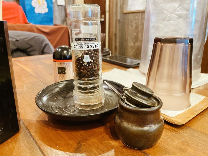 卓上には黒胡椒と柚子胡椒が置いてあります。