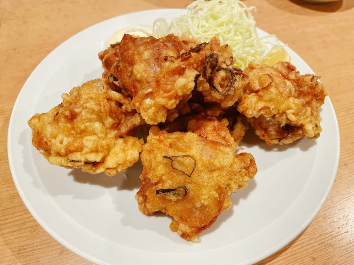 唐揚げも食べたけど、衣がサクサクで中はジューシー。