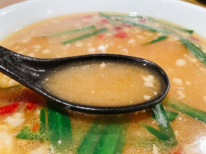 スープを一口飲むと、味仙と違ってほどよい辛さ。