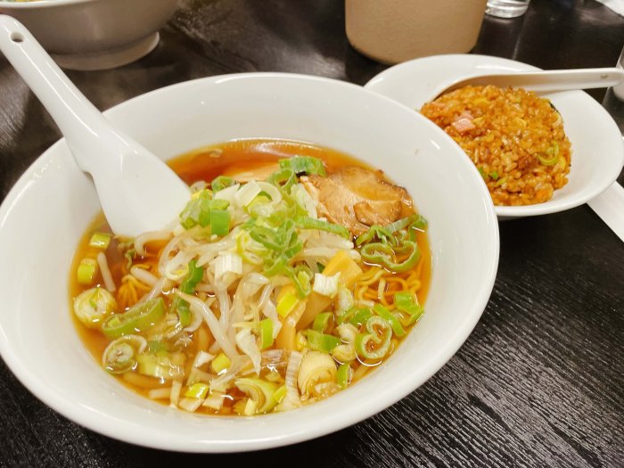 ラーメンのあっさりしたスープと、炒飯の濃い味が交互に来るから、全く飽きない。